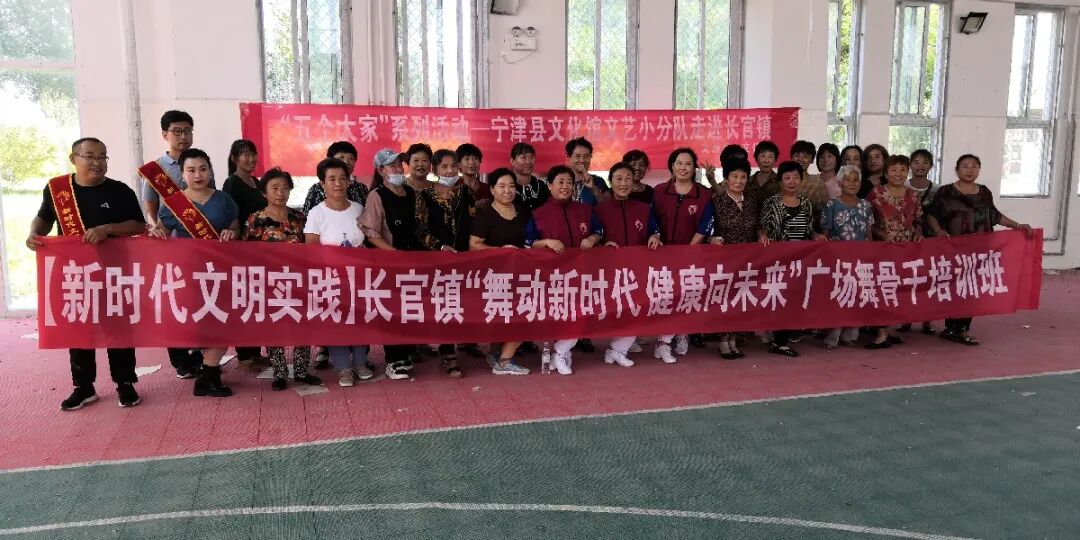 8月21日上午,“五个大家”系列活动——宁津县文化馆文艺小分队走进长官镇。为了让乡镇更好的体验文化带来的乐趣,宁津县文旅局组织文化馆开展了【新时代文明实践】——“舞动新时代 健康向未来”广场舞骨干培训班。