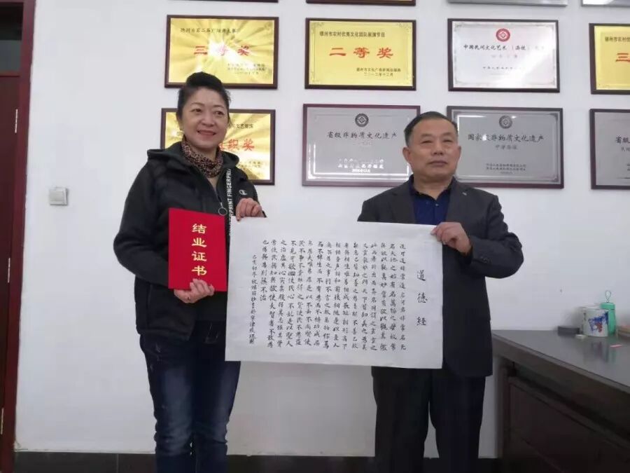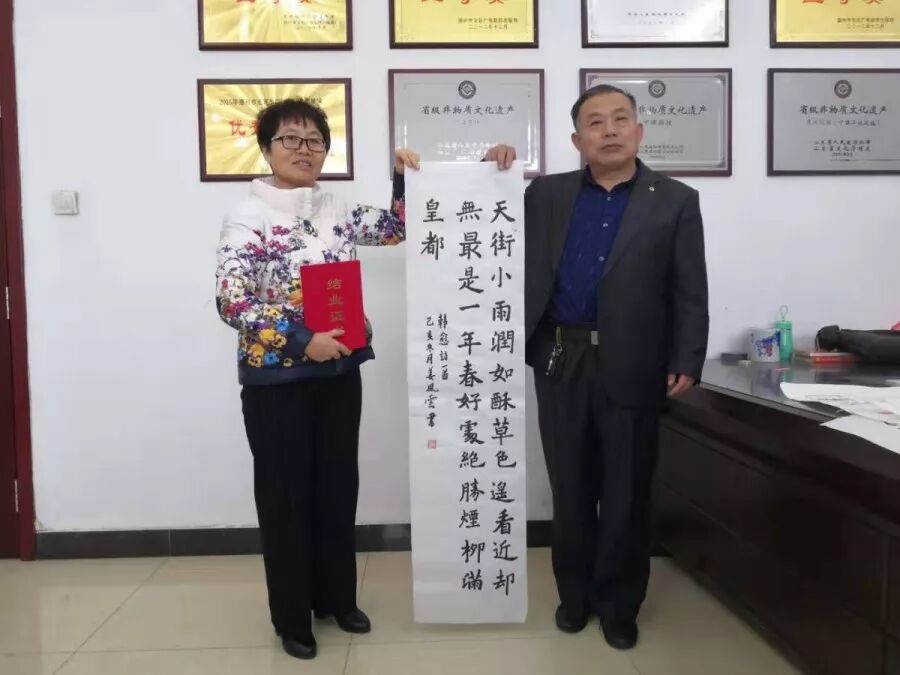 为加快构建现代公共文化服务体系,充分发挥文化馆全民艺术普及的责任与使命,不断提高我县书法艺术工作者和爱好者的整体水平,宁津县文化馆积极发挥公益文化服务基地的优势,于3月份举办了2019年文化馆公益书法培训班,经过8个月的学习,11月17日上午2019年宁津县文化馆公益书法培训班在文化馆多功能厅圆满结业! 宁津县文化馆馆长顾秀宝希望培训班的学员日后能够坚持练习书法消化和吸收书法课上的知识,努力提高书法造诣,同时将所学、所想、所感传授给身边的书法爱好者,为书法传承做出应有的贡献。学员们也都拿出自己的作品,纷纷表示:感谢文化馆组织的书法培训班,既学到了书法技艺,又受到了传统文化的熏陶。