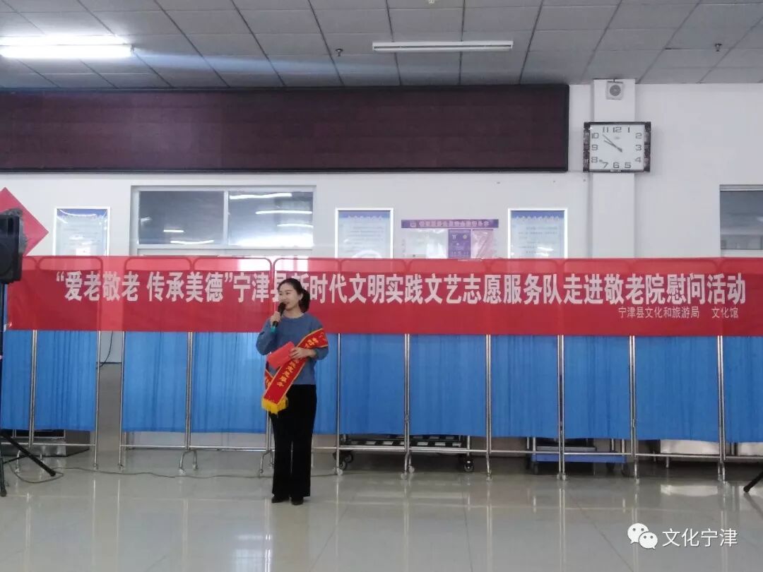 12月30日上午,宁津县文化和旅游局组织新时代文明实践文艺志愿服务队来到县敬老院进行慰问演出活动。这次活动也拉开了宁津县文化和旅游局春节走基层演出活动的序幕。